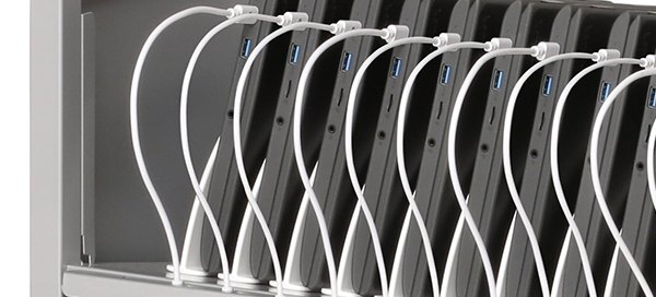 LED lights built-in to each Bretford USB-C cable let users know when devices are fully charged and ready to use.
